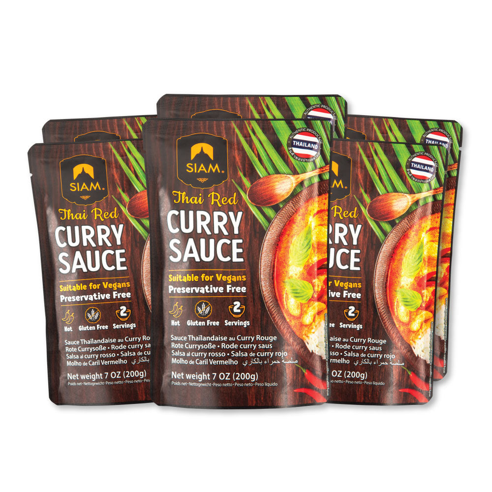 Spicy sauce prepared with coconut milk, red curry paste, Thai eggplant and mushrooms. Mix with your favourite meat or vegetables and you’re all set !