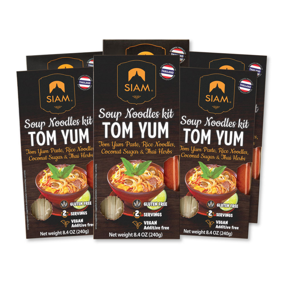 Комплет који укључује пасту Том Јам, пиринчане резанце и тајландске зачине.